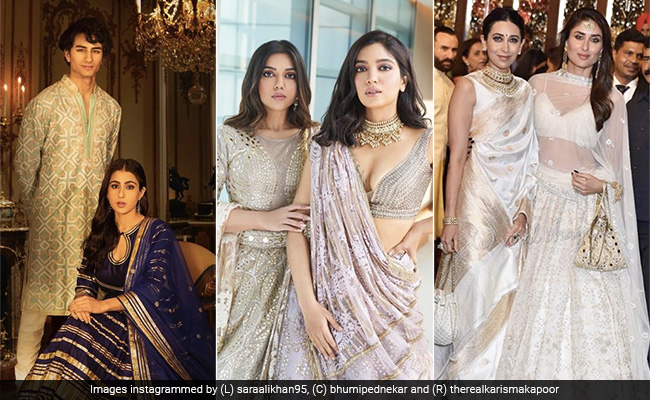 Actress Sara Ali Khan shares a great rapport with her brother Ibrahim Ali Khan. They often give us sibling goals with their pictures together on social media. Here, Sara dazzled in a gorgeous deep purple silk Anarkali set lavishly embroidered all over with gota appliques. The actress accessorised herself with dangler earrings. Her kohl-rimmed eyes and glossy lip colour went well with the regal look. Ibrahim went for a resham printed kurta pyjama set in pistachio colour.