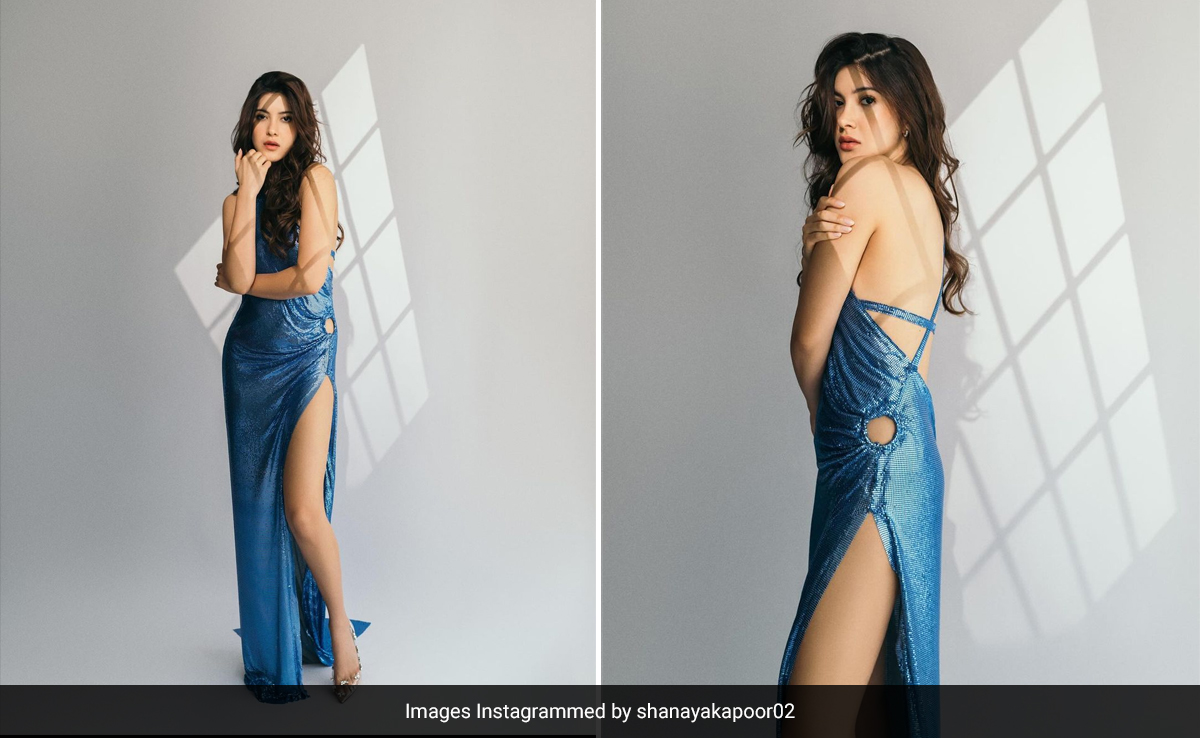 Shanaya Kapoor's impeccable style never fails to stun us. Whether she's wearing traditional outfits or modern designs, the star kid has always won us over with her ever-so-chic style. Shanaya embraced the blue hue opting for a metal mesh dress from Lebanese fashion designer Jad Ghandour's Spring Summer 2024 collection. The dress's flowing silhouette exuded a chic vibe, while its one-shoulder design and gathered details around the waist ring added a touch of drama. The backless style further injected extra pizzazz into her look. A thigh-high slit and a delicate train elevated the design to a whole new level. Shanaya styled her hair in loose curls with a side partition and opted for minimal earrings and transparent heels to complete her look.