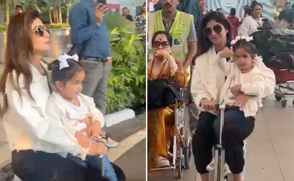 Shilpa Shetty's fashion is all about vibrant, cheerful colours, prints, and daring closet experiments. Whether in festive fashion or red-carpet moments, there is never a dull moment with Shilpa. Her airport style also look casually chic and comfortable. The actress just came into Mumbai city and that too on her motorised trolley bag. She wore a full-sleeved white jacket with a white t-shirt beneath it and teamed it with a pair of deep-toned denims. She accessorised the look with a pair of trendy tinted sunglasses and a pair of white sneakers. Shilpa's daughter looked adorable as she twinned with her mother in a white jacket and dark pants.