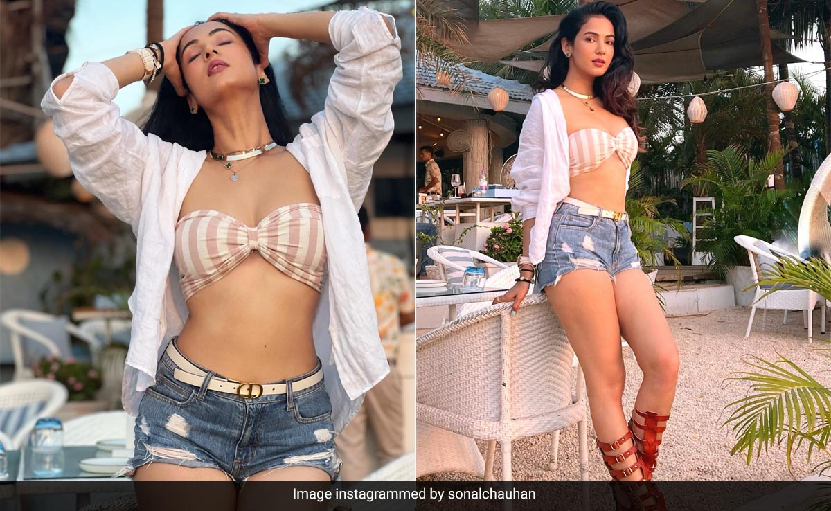 Hot summer girl season is here and we can already see celebrities giving us major style goals to bookmark this season. The latest celebrity on our list is actress Sonal Chauhan who is giving us major diva vibes in an off-duty yet statement outfit. She is truly sweeping social media with her 'less is more' look. Sonal is amping up the hotness factor in the chicest pair of denim shorts, paired with a strapless striped bralette. She teamed the look with chic white shorts adding a breezy vibe to the overall fit. We are already taking notes for our next vacay!
