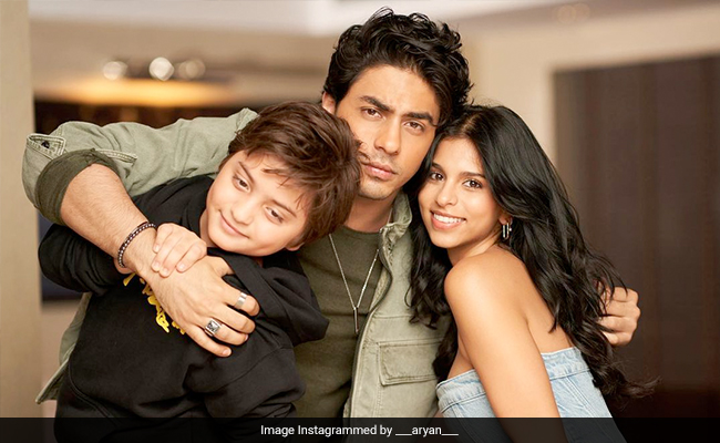 It isn't often that we get to see a family picture with all of Shah Rukh Khan and Gauri Khan's children in a single frame. Much like their dear dad, the three kids, who are studying, working and travelling in different parts of the world, are barely even photographed together. So when they are, it's a moment worth noticing. In a set of photos posted by the oldest of the siblings, the boys and girl are seen embracing each other in a sweet moment. It's also when we see how deep denim love runs through the Khan genes. While the littlest Khan AbRam wore a black sweatshirt with his blue jeans, the other two played things up. Fashionista of the family Suhana is seen in a denim corset with matching shorts while Aryan wore an acid washed denim jacket over an olive coloured t-shirt. It seems like the Khan kids are growing into spitting images of their mom and dad.