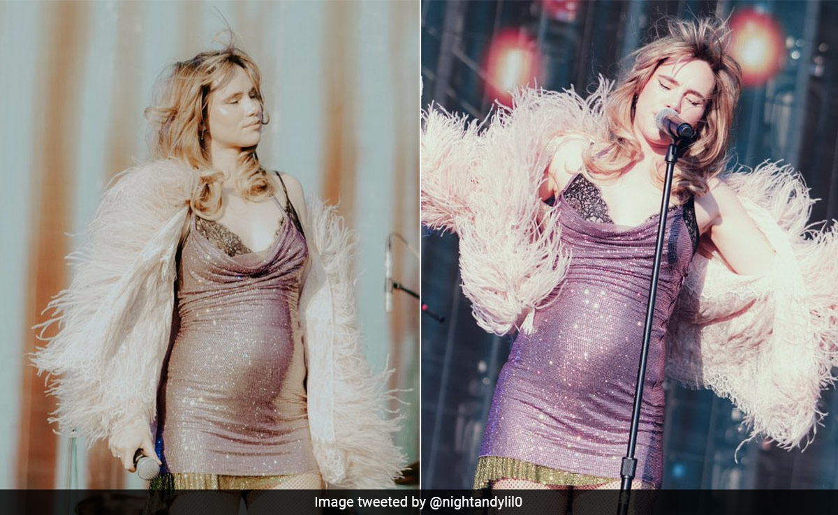 Hollywood singer and actress Suki Waterhouse recently performed at the Corona Capital Festival 2023 in Mexico. While the star received much love for her performance, what surprised her fans the most was that she chose to announce her pregnancy with Hollywood actor Robert Pattinson at the concert by showcasing her baby bump in a shimmery sequin mini dress. The actress wore a strap mini dress with a plunging neckline, lace bralette, and a bodycon fit which made it clear to the audience that she had a baby on the way. The shimmery pink outfit had an asymmetrical ruffled hemline in shimmery gold. The pair of knee-length boots that the actress chose with the outfit added an edge to Suki's look. She also carried a feathered cape in blush with the look.