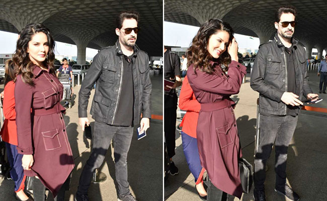 Sunny Leone with husband Daniel Weber at the airport
