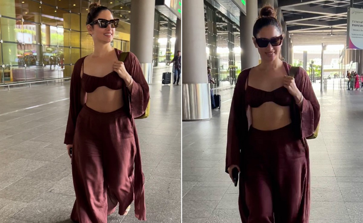 After the smashing success of her recent projects like Jailer and Aakhri Sach, Tamannaah Bhatia treated herself to a well-deserved getaway in the Maldives reportedly with Vijay Varma. The diva's exotic escape was all about stunning fashion moments. Even while making her return to India, she presented a quintessential holiday look. What looked like an extension of her beach holiday, she picked an effortlessly chic three-piece co-ord set in a deep brown shade. The outfit featured a stylish bralette, high-waisted flared pants, and a long shrug. A top bun updo and stylish sunglasses were giving off those perfect holiday vibes.