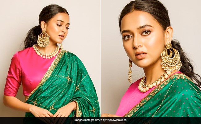 - Tejasswi Prakash wears a beautiful silk saree