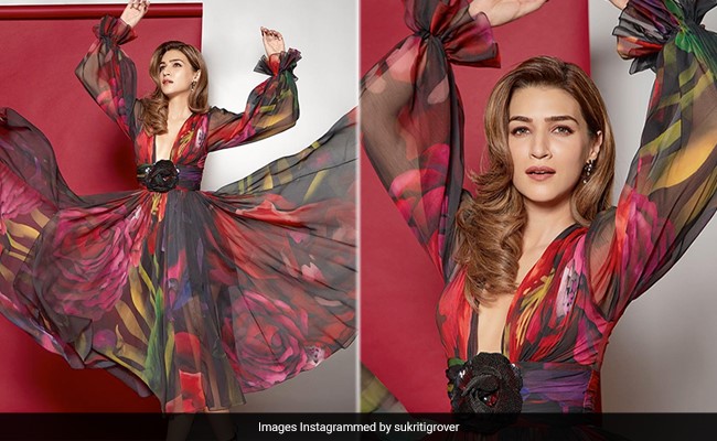 Kriti Sanon has been busy promoting her latest movie Bhediya alongside Varun Dhawan which is scheduled release on 25th November 2022. We are not just amazed by the trailer of the movie but totally in awe of Kriti's closet selection for the promotional events. The diva has left no stone unturned as she opts for gorgeous outfits while promoting the movie. For her latest photoshoot, from the pictures shared by her stylist Sukriti Grover, Kriti was seen wearing a multicoloured maxi dress with printed roses made on it. The outfit from designer label Gauri and Nainika featured ruffled sleeves, a deep neckline and a glamorous fall at the bottom. A broad waist belt in black added a stylish edge to the outfit. Kriti opted for a pair of strappy black heels to go with her outfit. For accessories, she opted for a pair of studded floral earrings and teamed it with minimal glam makeup with shimmery eyelids, well-contoured cheeks and coral lips.