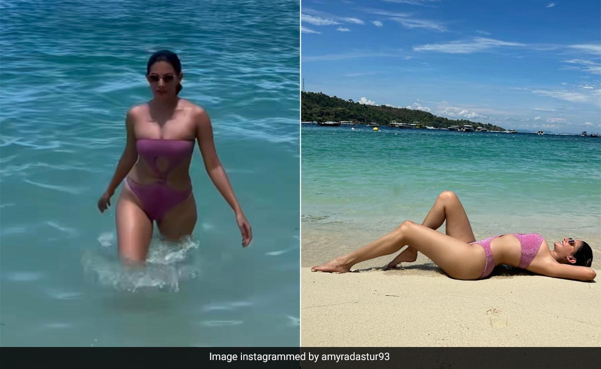 Lounging on the beach is a summer love language and Amyra Dastur seems to be making the most of it. The actress who is currently vacationing is making sure to give us some incredible fashion moments as she basks in the beachy weather. Bikinis and swimsuits are an obvious choice for summer vacays and Amyra did it all right with one swim set at a time. She took her signature style a notch up in a stunning purple cutout swimsuit. The shimmery bit along the fit added a stunning edge to the look. With a strapless style and detailed cutout pattern around the torso, Amyra surely amped up the oomph and we cannot agree more!