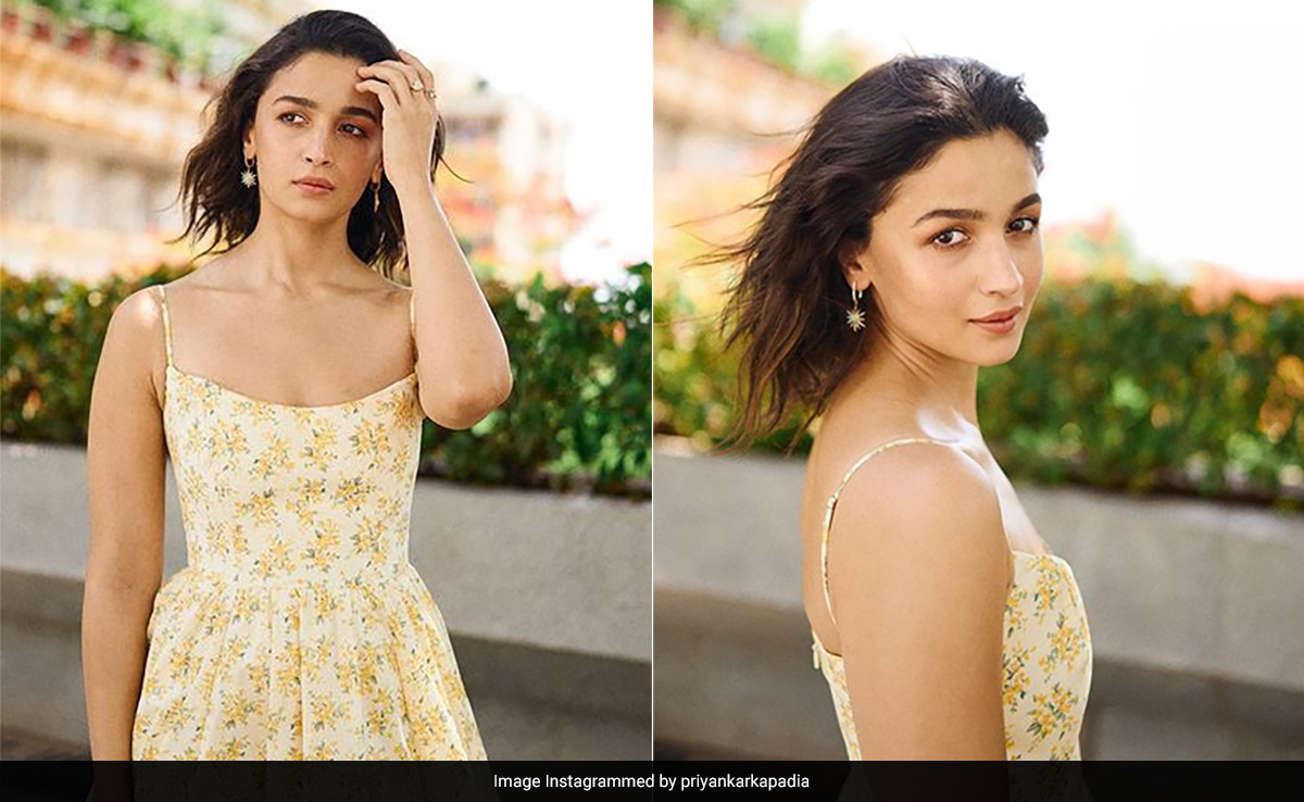The actress slayed a perfect floral moment styled by celebrity stylist Priyanka Kapadia, who put together this casual yet statement ensemble. The dress was made of cotton and had a buttery yellow floral print all over with narrow straps, box pleats and a fit and flare fit detail that suited Alia's figure well.