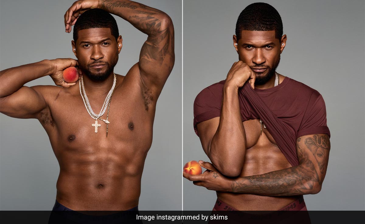 Men's innerwear is definitely having a moment. The year started off with Jeremy Allen White fronting Calvin Klein adverts in iconic white briefs on a New York roof top. Now it's time for Skims to steal a bit of that spotlight. After all, it is Kim Kardashian's brand. Before Valentine's Day 2024, Skims is launching a new collection of base layers, modelled by none other than Hollywood artist Usher. In the latest photoshoot posted by Skims on Instagram, Usher is seen sporting the Skims Boxer Briefs in a deep shade of midnight blue. Skipping the shirt, he showcased a toned torso and tattoos across his arms. For a bit of bling, Usher wore multiple sparkling chains around his neck and studs in his ears while keeping his hair cleanly cropped.