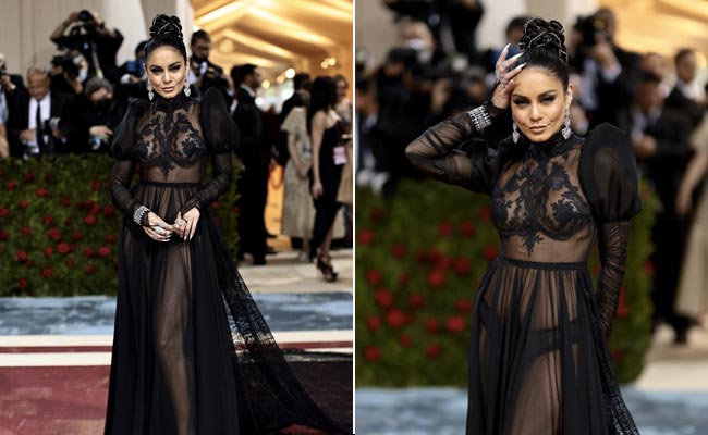 From being Gabriella Montez on High School Musical to making a sheer black outfit at the Met Gala 2022 red carpet look like the most fantastic thing on the face of this earth, Vanessa Hudgens has come a pretty long way. She is Coachella queen for a reason, after all. But it can't be the Met Gala and not have a single naked dress moment and we're glad that Vanessa Hudgens was happy to chip in. Vanessa Hudgens' sheer black Moschino gown is nothing like you've ever seen before. Any daring black dress cannot match up to this one for sure with her flowy black fabric and lace detailing on the bust area. Apart from the lace trimmings and the bodice of the gown, the statement puffy shoulders also transport us back to the gilded era. Not to miss the dramatic trail in black lace. We've seen many naked dresses in the past but none like the one Vanessa Hudgens brought to the table. We reckon if Bridgerton featured a rebellious daughter with a penchant for rock music and punk goth music, Vanessa Hudgens' 'pink' carpet look would be the perfect moodboard.