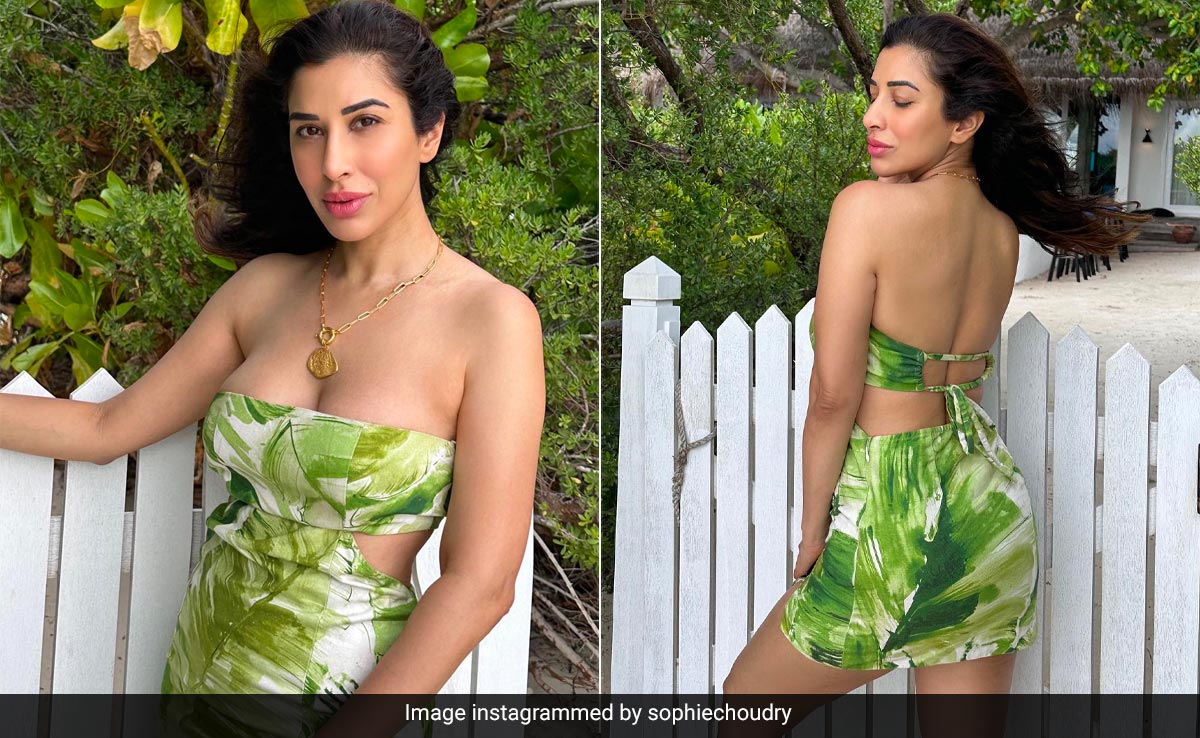 From runways to the streets, cutouts have been on our radar ever since we can remember. Now it is just getting better with celebrities giving their own kind of spin to it. Trust Sophie Choudry to make a statement with whatever she wears, especially when on a vacay. The celebrity usually sticks to shimmer but this time, she ditched it all to give a fresh spin to breezy silhouettes in a stunning strapless mini dress. She looked summer ready as she had her own take on 'hot girl summer' in a strapless green and white tropical dress that came with the hottest cutout detail at the back. Her dainty golden necklace added a chic vibe to the overall look.