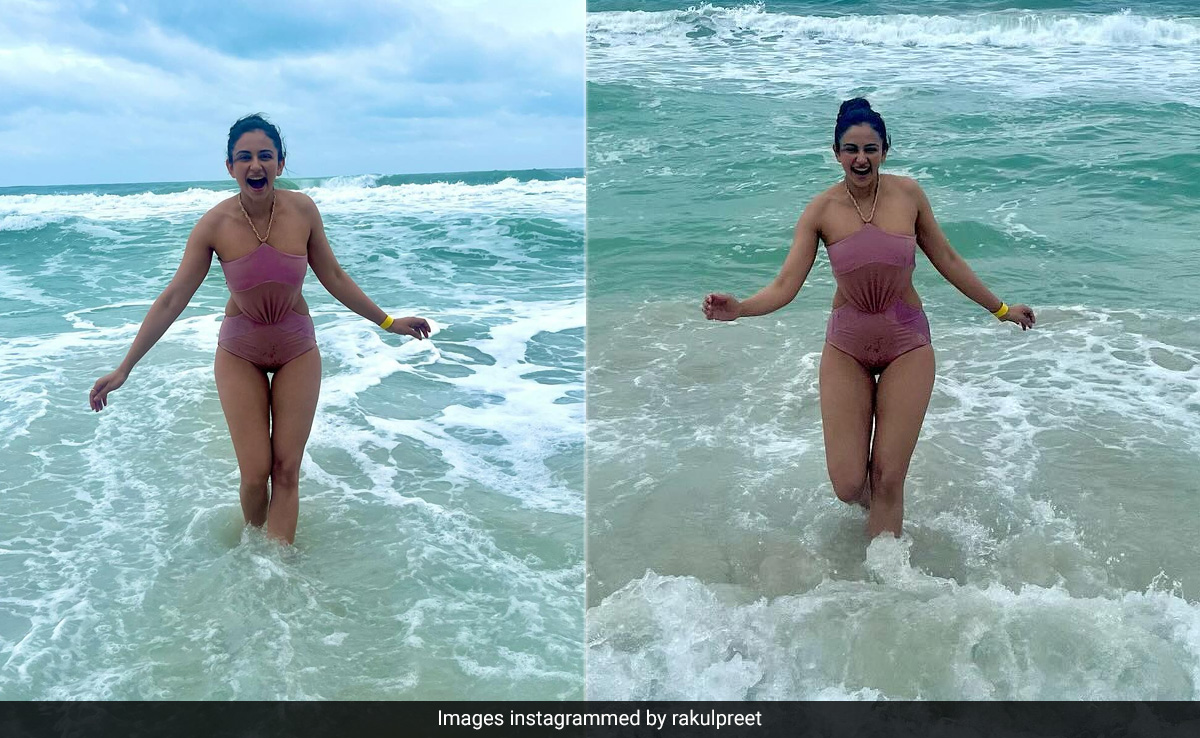 Rakul Preet Singh was, is and will be a water baby. When she decided to jet off to a tropical vacation for a winter break, we weren't surprised. After all, she got to flaunt her stunning beachwear. As Rakul said, no points for guessing where she is holidaying. The actress, on Wednesday, dropped a couple of glimpses from her beachy holiday. Rakul picked a muted pink monokini from the shelves of Tizzi Swimwear. The halter neck number carried a rope detailing, forming a neckline. This tiny piece not only carried an extra edge but also added a tropical element to her beachy look. A wavy-style bralette was attached to the high waist bottoms through sheer fabric connected in a gathered detailing form. The cut-out detailing on her waist added the oomph element. By displaying her bare skin, Rakul made sure to keep the look completely natural. She sealed it all by tying her hair in a high messy bun.