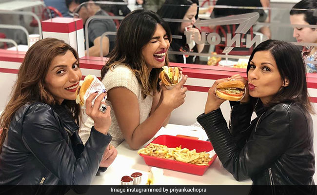 Priyanka headed to In-And-Out Burgers with her gal pals, manager Anjula Acharia and film maker Mubina Rattonsey to grab their popular burgers and fries. What else would make a fitting ensemble for an event like this than a Chanel suit. That's right. At the fast food meal, Priyanka is seen laughing with her buddies, burgers in their hands and a plate of fries in front of them. To caption it, Priyanka says, "Burgers and Chanel...my favourite combo with my fav girls. @anjula_acharia @mubinarattonsey@chanelofficial"