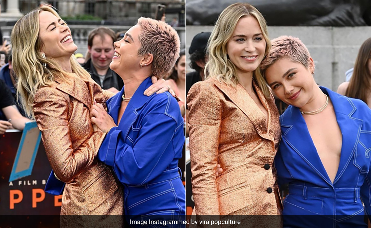 Wardrobe malfunctions are evidence that embarrassment can visit even the most rich and famous in the world. Not all such incidents are preventable but if caught in the nick of time, they can save the wearers from a whole lot of humiliation, especially if it's on a world stage. The Oppenheimer movie premiere recently took place in London, which saw its stars in attendance, from Cillian Murphy and Emily Blunt and Florence Pugh to Robert Downey Jr. During the photo call, Emily; who wore a metallic bronze pantsuit and Florence; who picked a blue tuxedo dress, posed together for the snaps.