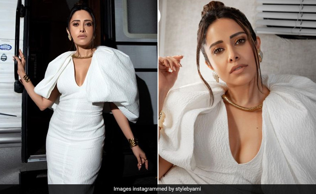 No amount of fashion inspiration can match up to magical white numbers. Keeping the fashion police on their toes this time is actress Nushrratt Bharuccha in a stunning white gown. The actress has quite a fondness for monochrome and she continues her style streak like an absolute pro in a gorgeous Stella Mccartney white midi dress. The plunging neckline added instant oomph to the overall look which was accentuated by dramatic shoulders. The bodycon fit of the dress had a flattering impact which complemented the overall ensemble. She took her glam game up with a dewy nude makeup look featuring highlighted tones. For accessories, she kept it chic with statement studs, a gold toned sleek necklace and dainty bracelets which completed the look perfectly.