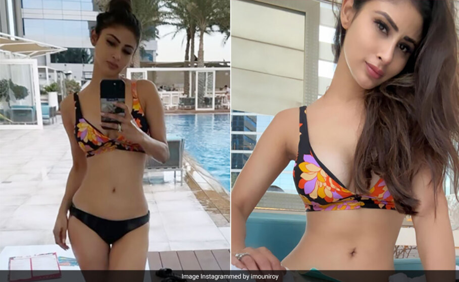 Mouni Roy's style meter is always running high, come what may be the occasion. May it be the glamorous red carpet looks, movie promotions, or festive occasions, the actress always manages to score a perfect 10 on the scoreboard. What we like the best about Mouni's fashion choicesare her travel looks. The diva graced us with a series of pictures from her pool day, welcoming the New Year. Mouni and her husband Suraj Nambiar started 2024 with a laidback pool day that included a chic style choice made by the diva. Mouni wore a two-piece swimsuit consisting of a floral bikini top and a low waist bottom. The strap top had a plunging neckline and featured vibrant floral prints made in yellow, orange, white, and lilac on the base of black. She paired it with an all-black low-waist bikini bottom. She wore minimal makeup with winged eyeliner, a dash of kohl in the eyes, rosy cheek tint, and matte lip colour.