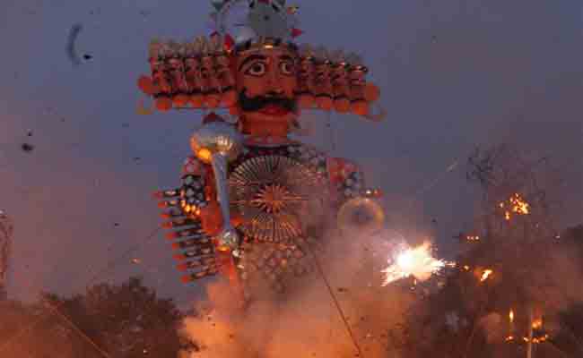 Traditionally, Ravana effigies are covered with black glaze paper.