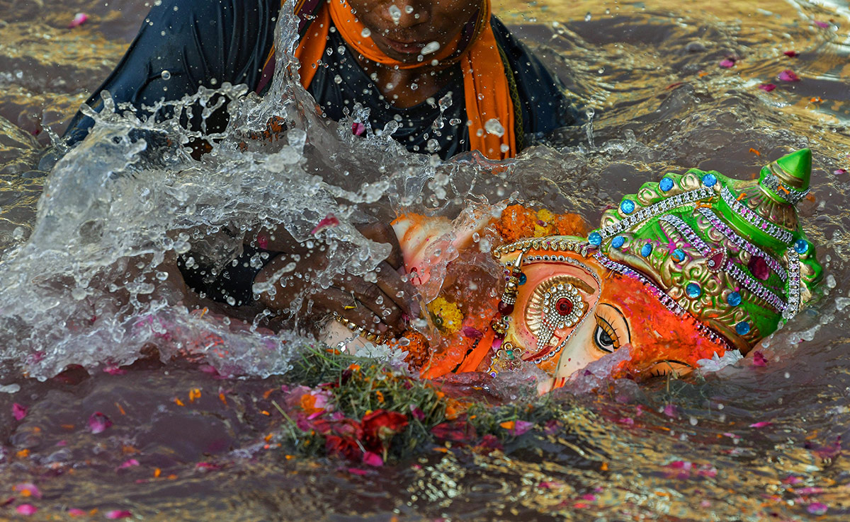 Lakhs of people thronged the beaches and lakes in the city to immerse the idols on the last day of the 10-day Ganpati Festival on Thursday.