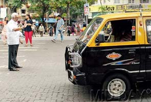 Mr Subramanium stops a taxi right before the zebra crossing