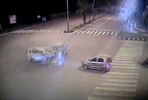On security cameras on a road in Navi Mumbai in Thane, 25 kms from Mumbai, a speeding Honda City collides with a van at 11 pm.