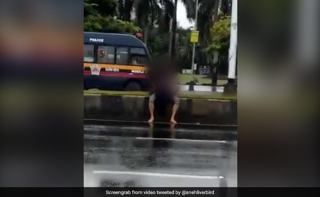 While pedestrians shot a video of the act, someone alerted the Police Control Room which rushed a mobile van from Marine Drive Police Station there.