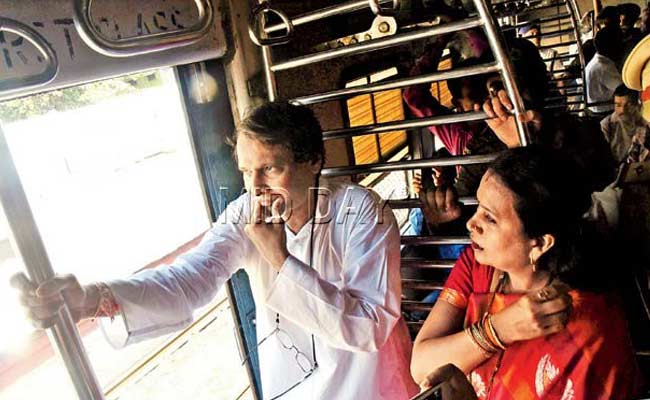 He boarded the first class compartment of a Borivli-bound train around 10.35 am and went straight to the other side of the door. MP Poonam Mahajan accompanied him. Despite the chaos and constant chatter, Prabhu was leaning out of the coach and waving to people standing on the other platforms.