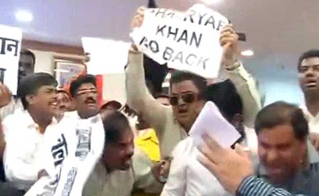 Shiv Sena activists waving placards of "Shahryar Khan, Go Back" crashed through the gates of the office in Mumbai's Wankhede Stadium that serves as the headquarters of the BCCI or the Board for Control of Cricket in India.