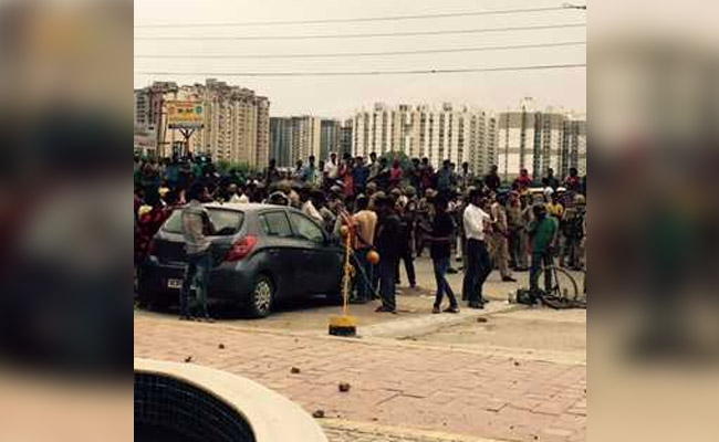Domestic workers and villagers threw stones at Noida's Mahagun Moderne housing society.