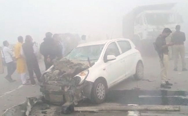 According to reports, a speeding i20 car crashed into a truck because of poor visibility on the Eastern Peripheral Highway near Greater Noida. Within seconds, six cars crashed into each other, leaving six people, including two children, injured.