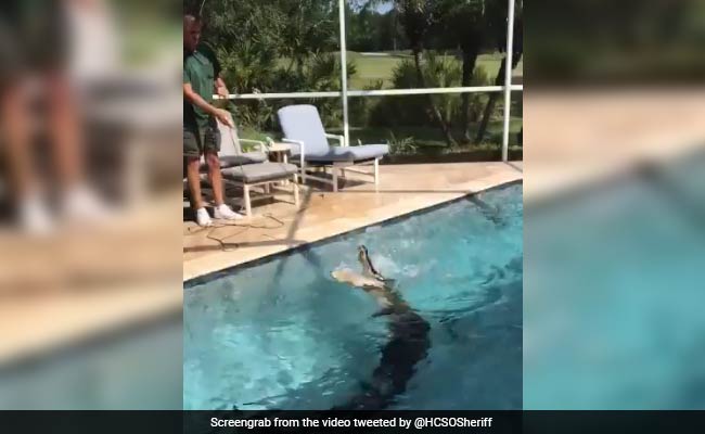 On Thursday, a Florida sheriff's office shared a footage of police officers helping a professional trapper remove a nine-foot-long alligator from a family's swimming pool.