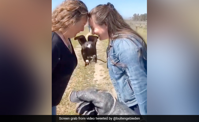 A video being shared widely on the internet shows two women standing with their foreheads touching, while another person directs a falcon into the small gap between their faces.