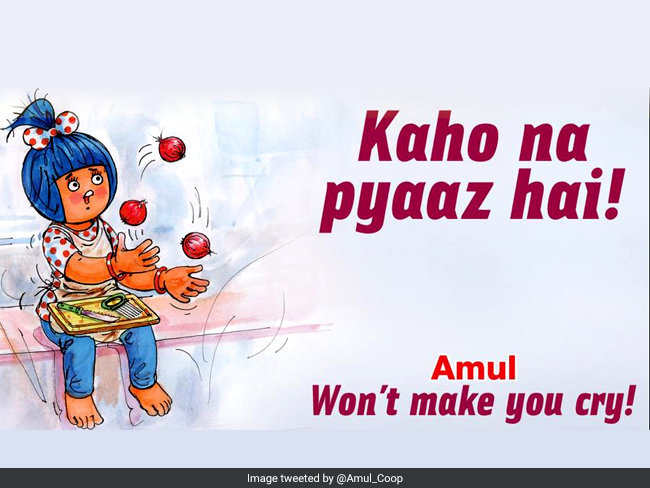 The ad posted by the company on its official Twitter handle has the iconic mascot girl juggling three onions and the headline "Kaho Na Pyaz Hai" and with the tagline "Amul won't make you cry!"