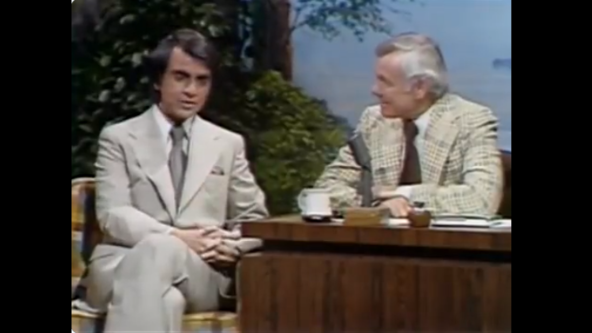 In the footage, Mr Sagan engages in dialogue with Johnny Carson, highlighting how children initially exhibit keen curiosity and pose clever questions but often encounter discouragement as they grow.
