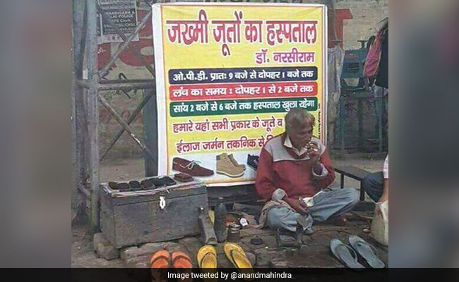 Mr Mahindra's tweets feature an incredibly well-advertised cobbler's shop. "This man should be teaching marketing at the Indian Institute of Management," the business tycoon tweeted. And one couldn't disagree with him seeing the sign at this little business.