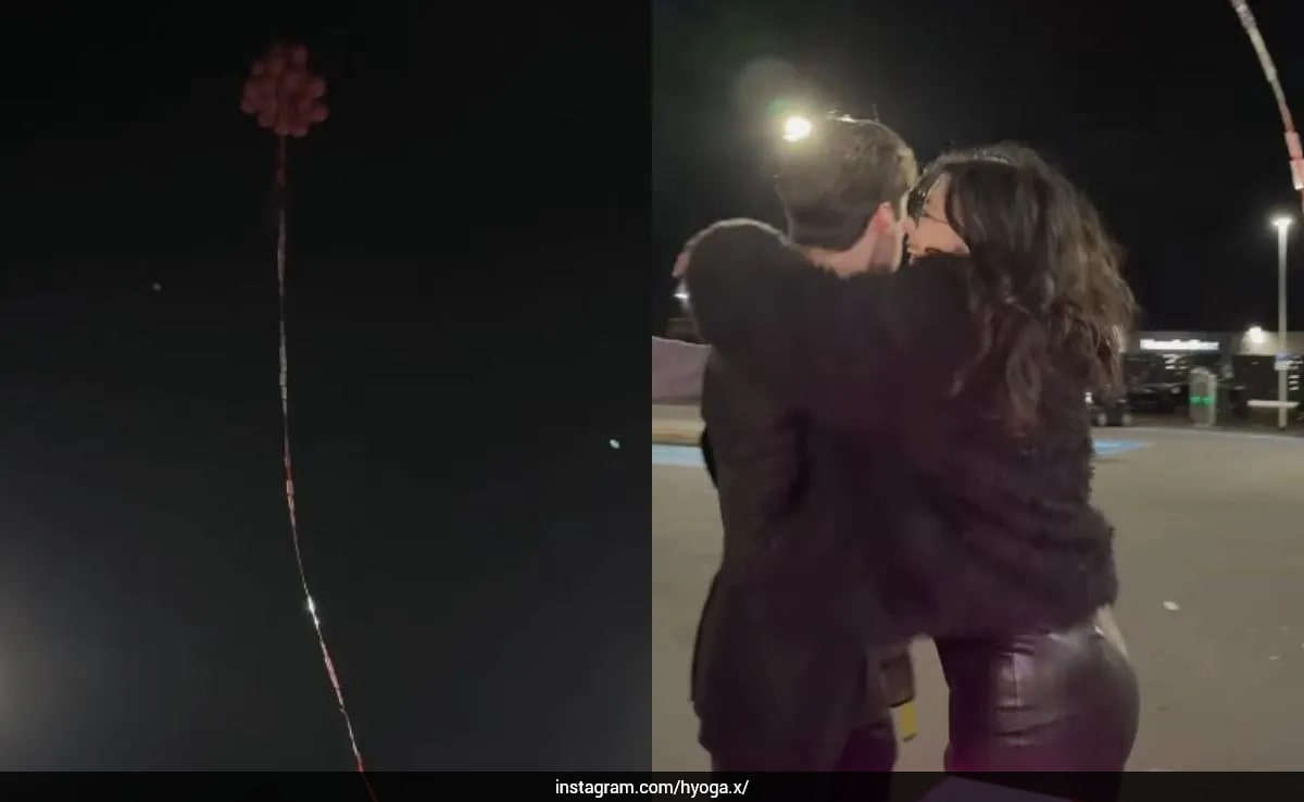 The now-viral clip, shared on February 10, has amassed more than 135 million views. It shows a couple standing in what appears to be an open parking area at night. A large white gift box tied with red ribbons sits on a table between them. The man, dressed in a black suit, prepares to unveil his surprise while his girlfriend, also dressed in black, holds a bunch of red balloons.