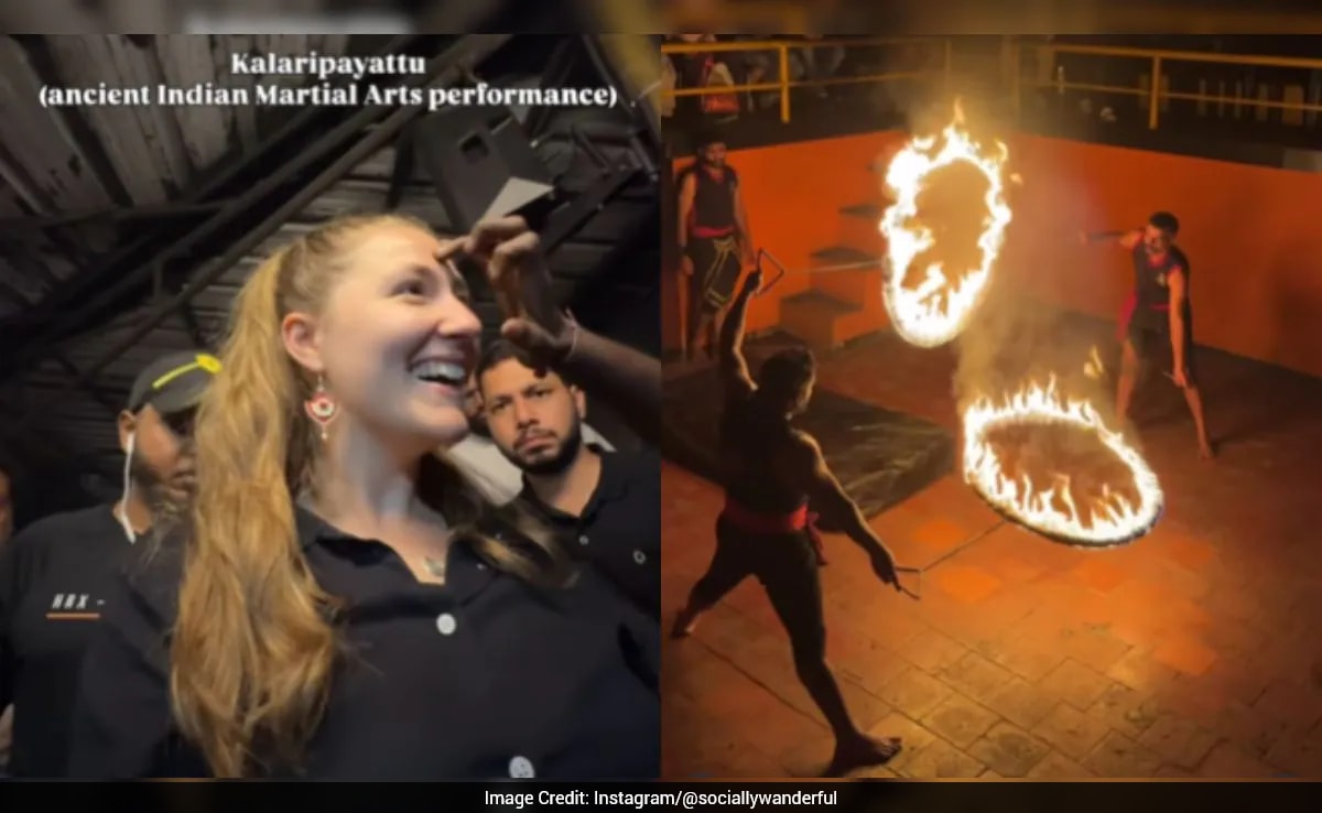 A British woman has gone viral on social media after sharing her exhilarating experience with Kalaripayattu, an ancient martial art form originating in the Indian state of Kerala. Travel influencer Deanna Leigh took to her Instagram handle to share a video that captures athletes performing intense exercises featuring weapons, fire, and an adrenaline-pumping atmosphere.