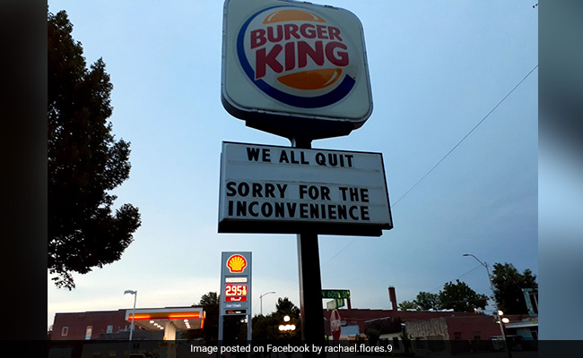 A Burger King outlet in Lincoln, Nebraska, is going viral, but for all the wrong reasons. The outlet became a topic of discussion among locals and internet users after the staff of the fast-food eatery said that they were “all” quitting. And the staff made sure that the news of them stepping down from their positions spread far and wide by announcing it on the giant store sign. A large signage outside the store read, “We all quit”, followed by, “Sorry for the inconvenience”. The image of the same soon went viral on social media with users sharing their two cents on what could have prompted such a move from the employees.