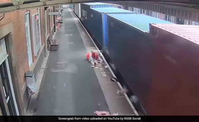 The horrifying moment an unattended stroller rolled across the station platform and was struck by a speeding train has been caught on camera. Fortunately, there wasn't a child strapped into the stroller and a tragedy was narrowly averted. The CCTV footage was released by Britain's Rail Safety and Standards Board (RSSB) as a warning to all parents.