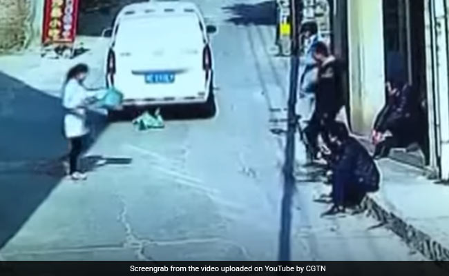 Footage captured on surveillance camera from Quanzhou City in east China's Fujian province shows a delivery van pulling over in front of a house. The child is seen sitting with his mother and others outside the house.