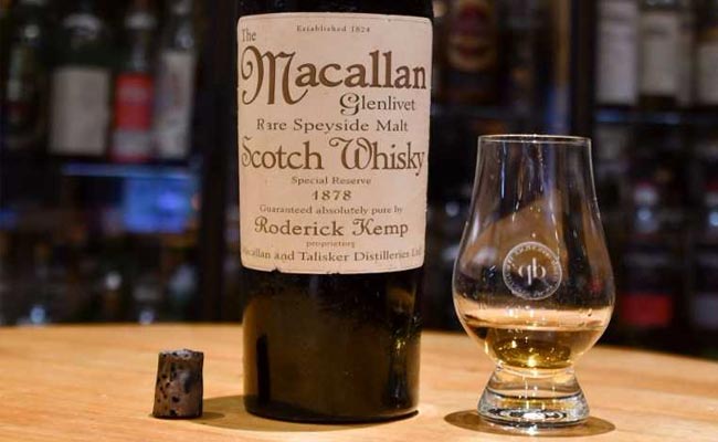 This handout shows a bottle of whisky made in 1878 by the revered Scotch maker Macallan.