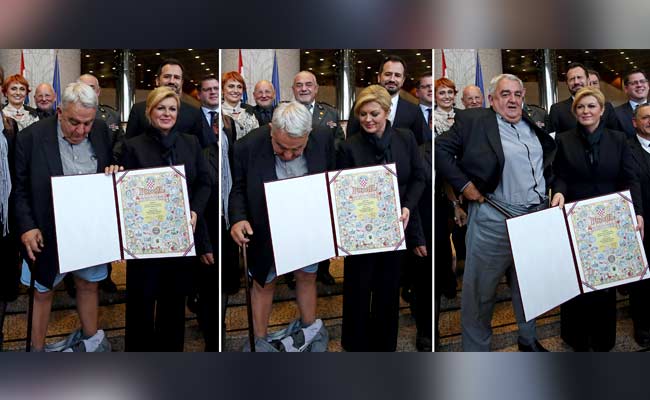 Ivan Zvonimir Cicak, who heads the Croatian Helsinki Committee for Human Rights, was proudly posing in the front row for a photo with the president when his trousers suddenly dropped to his ankles.