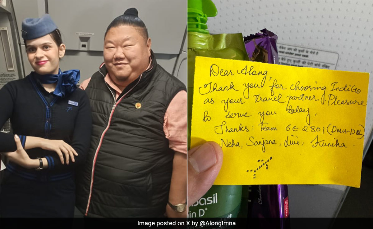 This time, the Bharatiya Janata Party (BJP) leader shared a picture of a sweet note he received from the IndiGo cabin crew during his recent flight to New Delhi. The note from the crew said, "Dear Along, Thank you for choosing IndiGo as your travel partner."