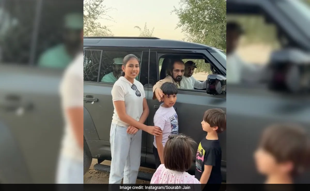 The video shows the Dubai ruler rolling down the window of his car and greeting the family personally. He also invited the children to click a photo with him.