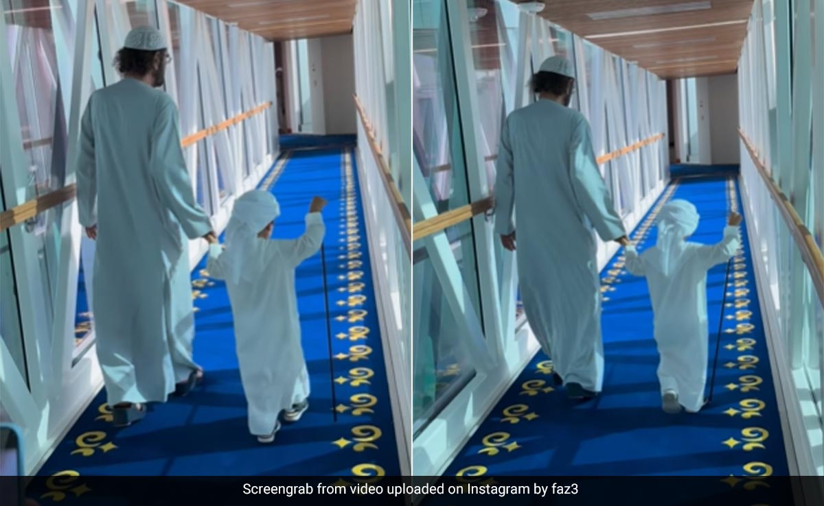 Sharing the video, the crown prince wrote on Instagram, ''It's enough to be holding on to it. May God protect you all.'' The video shows Mohammed bin Rashid Al Maktoum, and his grandson twinning in traditional Middle Eastern white robes, complete with headgear. The Dubai ruler holds his grandson's hands while he plays with his walking stick.