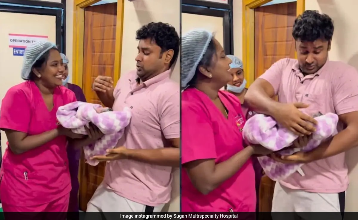 A heartwarming video of a first-time father's nervous and emotional reaction to holding his newborn has captivated millions after being shared by Dr. Suganya Saravanakumar on Instagram. The clip, filmed at Sugan Multispecialty Hospital in Chennai, shows the doctor gently guiding the trembling father as he experiences a mix of awe, fear, and joy. In the video, the father's hands are visibly shaking as he prepares to touch the infant. He appears stiff and unsure, prompting the doctor to calmly coach him on how to position his hands safely.