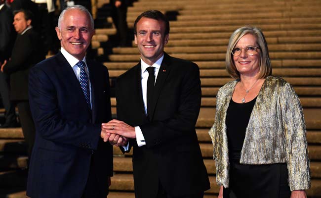 France's Emmanuel Macron with Australian Prime Minister Malcolm Turnbull and wife Lucy Turnbull (AFP)