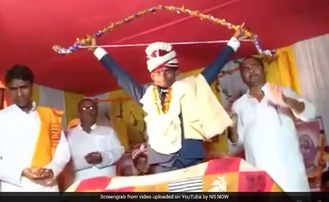 In the video, the groom is on stage and is seen praying to Lord Shiva before breaking the bow. As soon as the groom breaks the bow, he is showered with flowers by the guests. The bride and groom exchange garlands on stage. Following this, all rituals of the wedding were conducted in line with the wedding of Lord Rama and Goddess Sita as mentioned in the Ramayana, reports said.