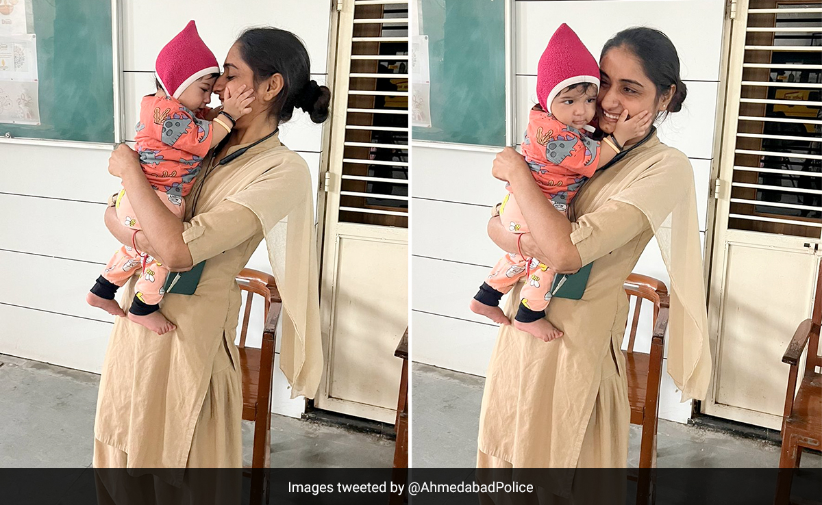 ''Daya, a woman police constable, came to the aid of a mother who was taking her exams in Odhav, Ahmedabad. The constable stepped in when the infant started crying, allowing the mother to continue her exams without worrying about the child,” says the caption of the video when loosely translated from Gujarati,'' Ahmedabad police wrote.
