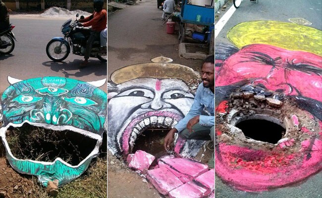 The crocodile did the trick and the pothole was filled. Since then, Mr Nanjundaswamy has been changing the face of Bengaluru pot holes, one brush stroke after another.