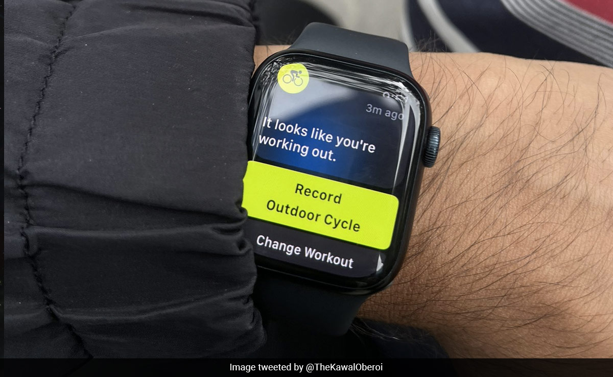 He shared the image of the smartwatch on Twitter and captioned it, "How bad is Bangalore traffic? Well, I took a Rapido bike ride, and my watch thought I was cycling."